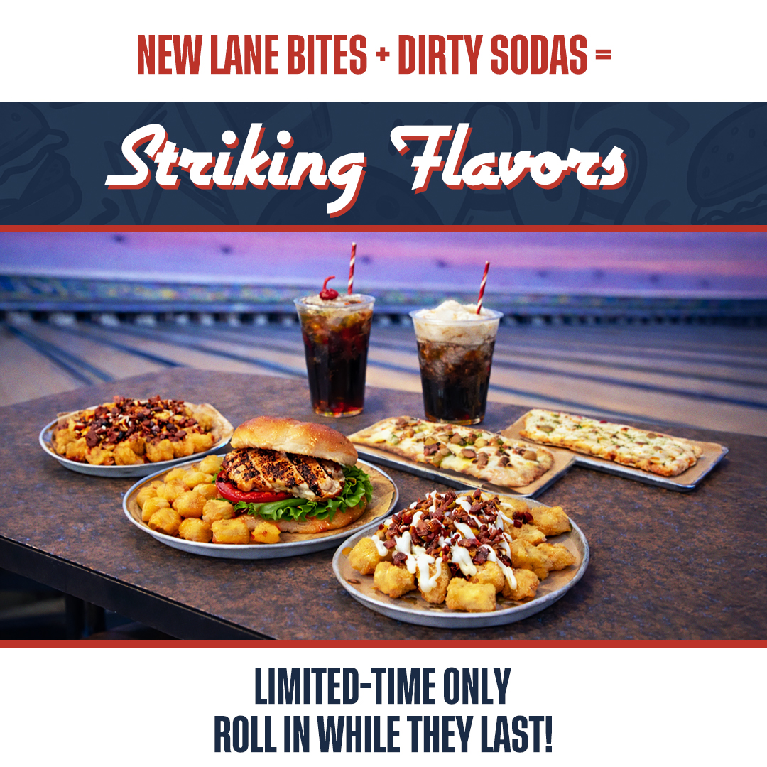 Whether you’re here for a perfect game or just the perfect snack, our Limited-Time menu is packed with bold flavors worth celebrating. Dig into craveable comfort food and sip on creamy, refreshing dirty sodas that bring the trend straight to the lanes.